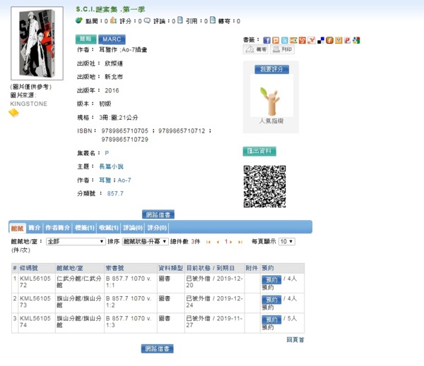 (高雄)市立圖書館只有一套預約5本為限幾乎爆滿,可見其人氣多火紅!